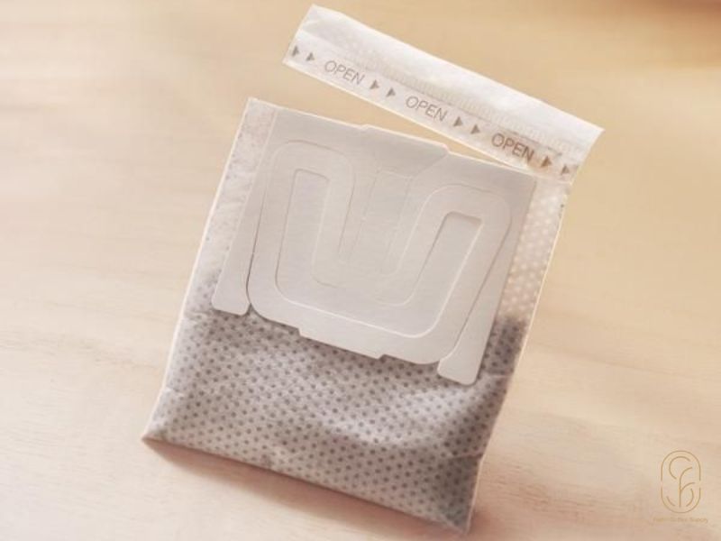 - Mở túi: Xé miệng túi phin giấy theo đường chỉ dẫn.